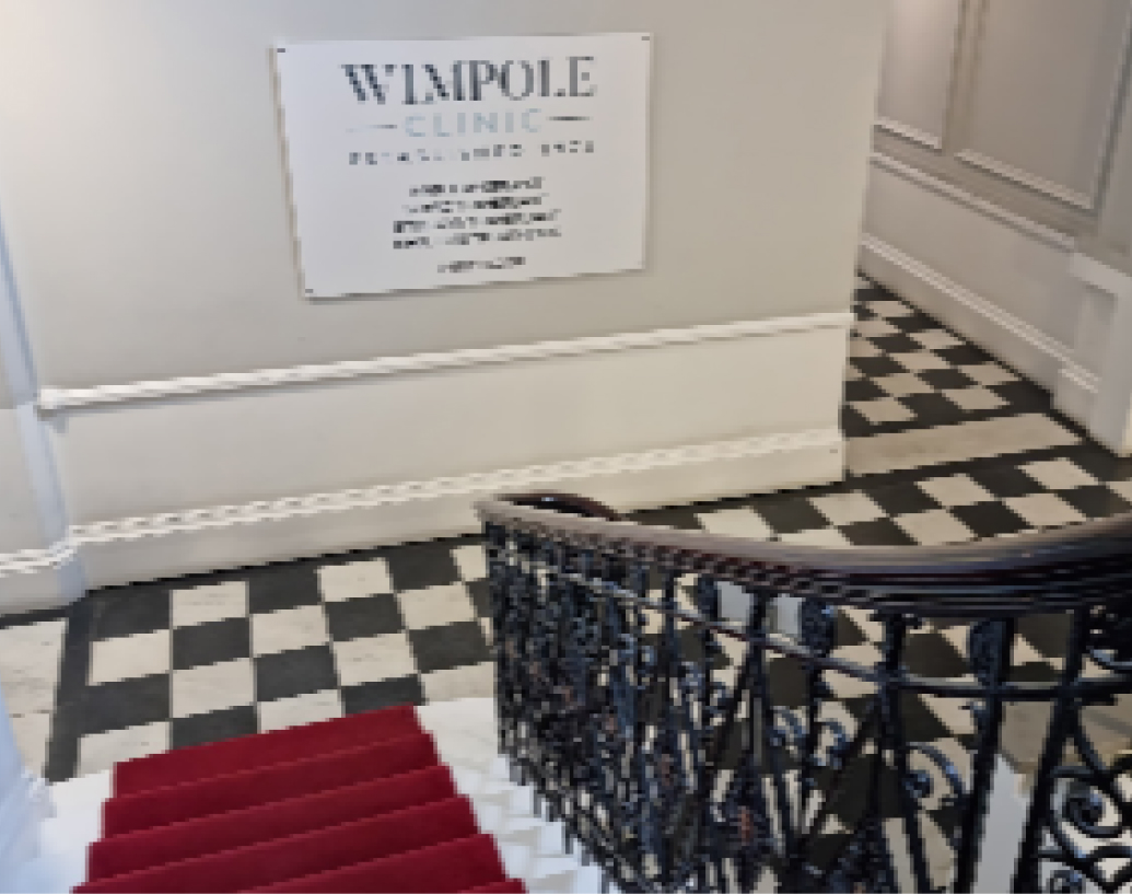 Hair Transplant Clinic London 2 Harley Street & 18-22 Queen Anne Street 30,000+ Satisfied Customers 1,500+ Positive Reviews 51+ Years of Experience Hair Transplant Clinic London Wimpole Clinic has been based in London and providing hair transplants since 1975 and is home to our headquarters and surgical theatres. All our London clinic staff are friendly, professional, and dedicated to delivering exceptional patient care, from the moment you arrive and throughout the aftercare and review process.We have surgical suites and consultation rooms in London at 2 Harley Street and 18-22 Queen Anne Street, where patients can meet their patient advisor and surgeon for an in-person consultation, as well as have their FUE or FUT hair transplants if they decide to proceed with treatment. Our Queen Anne Street clinic is also known as Harley Street Specialist Hospital, and is owned by the Wimpole Clinic.You’ll get the opportunity to see our theatres and preview the welcoming environment where your surgery will be carried out. Our London clinic is registered with the Care Quality Commission, and our team comprises some of the most prominent surgeons in the UK, all of whom are licensed under the General Medical Council. You can meet them and ask any questions about your procedure.We have a limited number of consultations each day so you’ll never feel rushed. Our patient welfare and comfort are absolute priorities in every hair restoration surgery procedure or treatment we do. Book A Free Consultation Nearby Accomodation & Parking No. 2 Harley Street, London, (HQ & Surgery) 2 Harley Street, LondonWIG 9PA Book A Free Consultation 18-22 Queen Anne Street, London (Surgery) 18-22 Queen Anne Street,London,W1G 8HU Book A Free Consultation Trustpilot Clinic Tour Previous Next Award Winning Hair Transplant Clinic London Clinic Contact Info Email info@wimpoleclinic.com Phone +44 (0) 207 935 1861 Opening Times Monday - Friday 8am - 8pm Saturday 10am - 5pm Sunday Closed Location 2 Harley Street, London WIG 9PA Schedule An In Person Or Video Consultation At Our London Clinic Book a Consultation Simply fill in your details and we'll get in touch with you shortly. Name* Email* Phone* Clinic*Choose Clinic Location*London, Harley StreetBirminghamBrightonBristolDerbyGlasgowLeedsLeicesterManchesterNewcastleNottinghamOxfordSwanseaTunbridge WellsWinchesterMayfair Hair (Super Premium)MessageConsent* I consent to my information being used to contact me regarding my enquiry in accordance with our Privacy Policy Promotion I would like to receive information, promotions and offers via email Δ Award Winning Hair Transplant Clinic How to Get To Our London Hair Transplant Clinics in Harley Street By Bus There are 2 bus stops near our clinics on Harley Street: Margaret Street Oxford Circus (Stop RE). This stop is 0.2 miles away and a 5 minutes walk.Harley Street (Stop L). This stop is 0.5 miles away and a 10 minutes walk. By Train The nearest London Underground station to our clinic is the Oxford Circus stop. This stop is located on the Bakerloo, Central, and Victoria lines. From here, it is only a 6 minutes walk away. By Car From Marylebone Rd (A501), turn onto Harley Rd and continue until you see our clinic. Our London clinics are located near the intersection of the A5204 and Harley St. near Cavendish Square Gardens. By Plane The nearest airports to our London clinic are London Heathrow International Airport, London Gatwick Airport and City Airport and they all share similar distances via train. From the airpport you may drive, take a taxi, bus or train to our London clinic location. Clinic Opening Times Monday - Friday 8:00 AM – 8:00 PM Saturday 10:00 AM – 5:00 PM Sunday Closed Parking On Street ParkingNearby on-street parking is ‘Pay by Phone’ only. This is a quick and secure way to pay by debit /credit card Nearest Car ParksQ-Park Harley Street, Queen Anne Mews, London W1G 9HF (0.2 miles, 3 minutes walk)ParkBee Q-Park – London, Harley Street, Queen Anne Mews, London W1G 9HF (0.2 miles, 3 minutes walk)JustPark, Oxford St, London W1G 0PG (0.1 miles, 3 minutes walk) Congestion Chargehttps://www.tfl.gov.uk/roadusers/congestioncharging Nearby Accommodation Boutique10 Manchester Street – 0.5 miles, 10 minutes walk 4 StarHoliday Inn Oxford Circus – 0.4 miles, 4 minutes walkHoliday Inn Regents Park – 0.5 miles, 12 minutes walk*Patients of the Wimpole Clinic get discounted accommodationDurrants Hotel – 0.5 miles, 10 minutes walkThe Marylebone Hotel – 0.3 miles, 6 minutes walkThe Mandeville Hotel – 0.5 miles, 10 minutes walk 3 StarBlandford Hotel – 0.9 miles, 14 minutes walkThe Grazing Goat Marylebone – 0.6 miles, 13 minutes walk Mark's FUE hair transplant review The experience from start to finish has been fantastic. After an initial conversation with Matt, I was put at ease about what to expect on the day and all of my questions were answered. On the day Dr. Malkani and his team were brilliant. There was a very relaxing atmosphere and the team couldn’t have done more for me. The Wimpole Clinic was recommended to me by a friend who had a transplant in July as he had a great experience. I’ll also be recommending the clinic to friends considering going ahead with treatment. Read More Testimonials Before & After Gallery Our Surgeons & Specialists See Our Surgeons Dr. Michael May (FRCS) Dr. Michael May (FRCS) Medical Director & Principal Surgeon VIew Bio → Dr Luciano Sciacca (GMC) Dr Luciano Sciacca (GMC) VIew Bio → Dr. Ismail Ughratdar (FRCS) Dr Ismail Uughratdar (FRCS) VIew Bio → Dr Kieran Dayah (GMC) Dr Kieran Dayah (GMC) VIew Bio → Dr Mir Malkani Dr Mir Malkani (MBBS, MISHRS, FRCS) VIew Bio → Dr Ahmad Moussa (FRCS) Dr Ahmad Moussa (FRCS) VIew Bio → Dr Meena Zareie (GMC) Dr Meena Zareie (GMC) VIew Bio → Dr Peter Thomas (GMC) Dr Peter Thomas (GMC) VIew Bio → Dr. Umear Ahmad (GMC) Dr. Umear Ahmad (GMC) VIew Bio → Dr. Correia (GMC) Dr. Correia (GMC) VIew Bio → We Are Registered With, Me